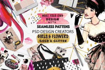 这组女性风格手绘设计元素合集可用于设计任何你能想到的女性化设计创意项目!