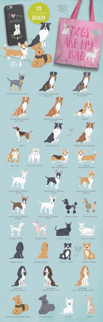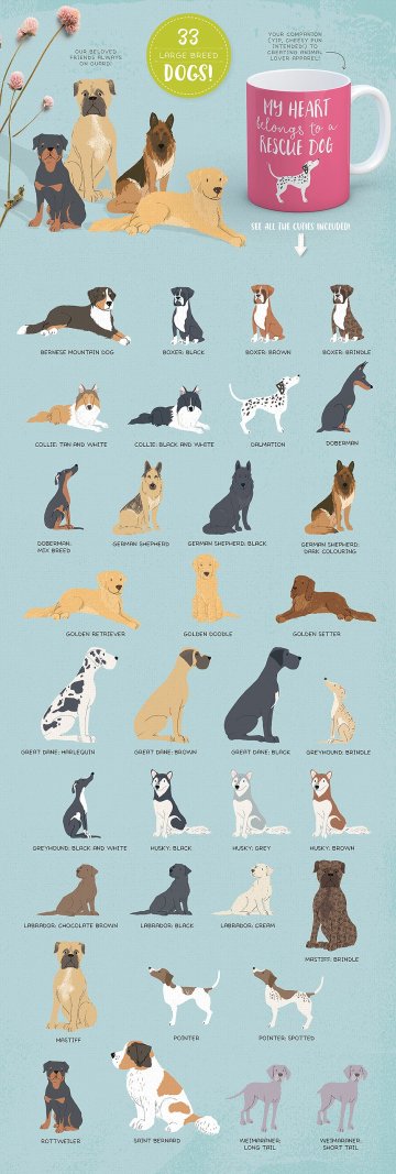 165种手绘动物设计素材 Cats-Dog-breeds-H