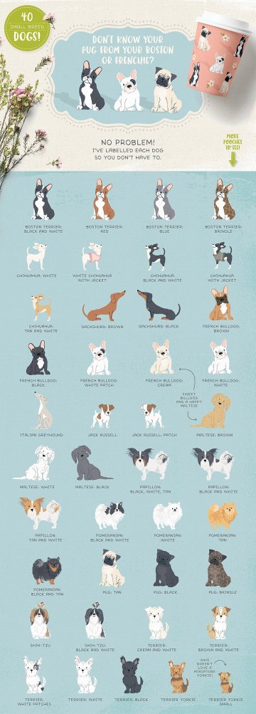 每只狗都贴上了标签,这样你就不用猜品种了!