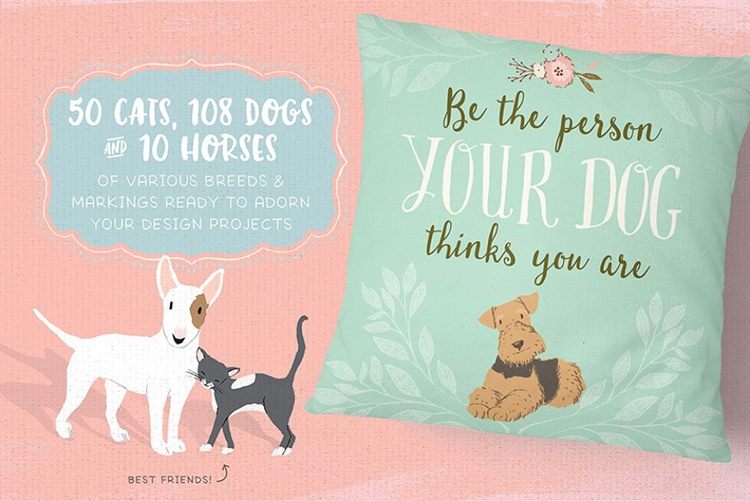 图穷联素材库 » 165种手绘动物设计素材 Cats-Dog-breeds-H