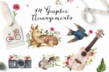 图穷联素材库 » 手绘水彩春天花卉植物设计素材 Vigorous-Spring