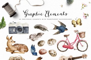 这组合集包括了116个png(300 dpi)手绘水彩图形元素,每个元素都为透明背景的png格式。