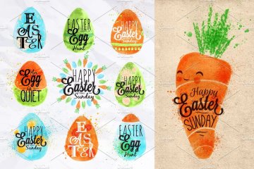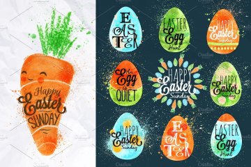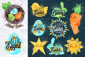 复活节主题手绘水彩可爱矢量插图素材 Easter-Set