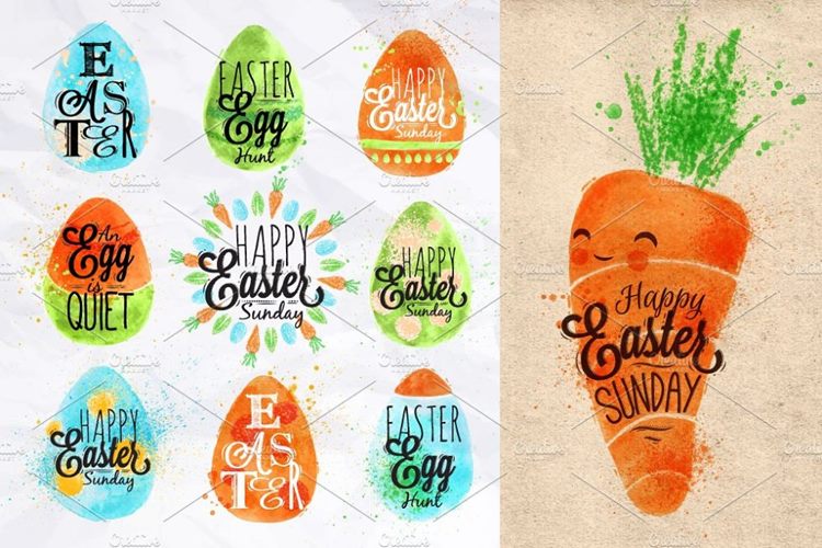 图穷联素材库 » 复活节主题手绘水彩可爱矢量插图素材 Easter-Set