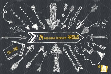 这组合集包括了24款手绘矢量黑板风格的箭头剪贴画,你会收到48个PNG和2个EPS文件。