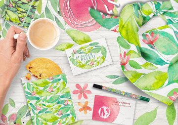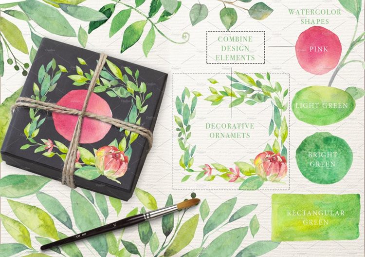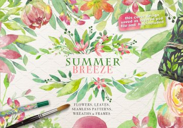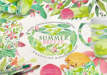 图穷联素材库 » 夏日主题手绘水彩花卉绿叶设计素材 SUMMER-BREEZ