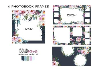 * 4个装饰相框 - 12x12\'(30x30cm)和12x24\'30x60cm) - PNG和JPEG。