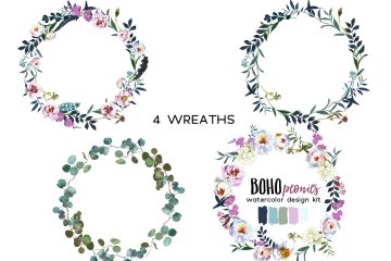 图穷联素材库 » 波西米亚风格手绘水彩花卉植物设计素材 Promo-Sale!