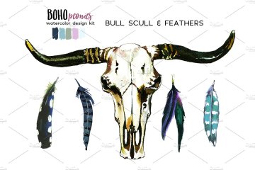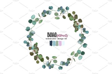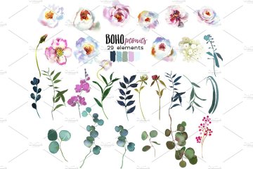 波西米亚风格手绘水彩花卉植物设计素材 Promo-Sale!