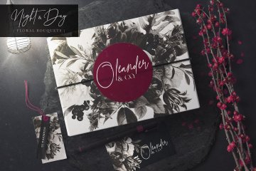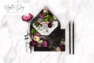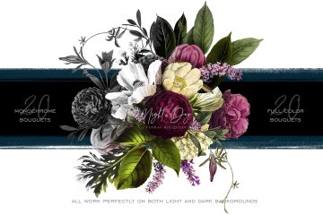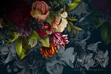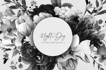 黑白和彩色复古花卉花束设计素材 Night-and-Day-