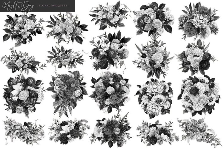 图穷联素材库 » 黑白和彩色复古花卉花束设计素材 Night-and-Day-