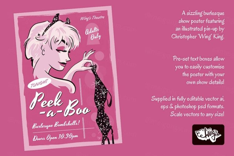 所有六张可完全定制的Burlesque Deluxe系列海报。