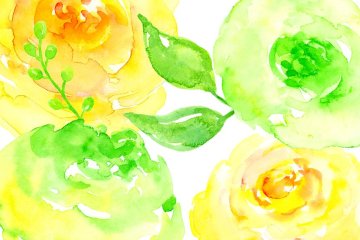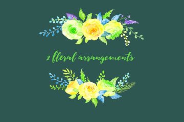 水彩剪贴画你好春天 - 明亮的黄玫瑰和绿玫瑰,装饰元素和现成的花卉立即即时下载。它们非常适合制作DIY婚礼请柬,博客标题,花卉字母,艺术版画,贺卡和墙壁艺术。