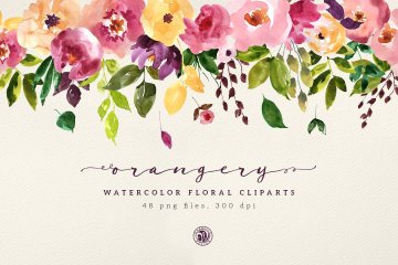 图穷联素材库 » 橘园手绘水彩花卉植物设计素材 Orangery-Waterc