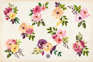 这组橘园水彩花卉剪贴画合集已保存为png文件,是用于设计剪纸图形DIY项目,邀请函,卡片,结婚请柬,贺卡,徽标,印刷设计,品牌,包装,海报,墙壁艺术,博客,网站,广告等其他任何你能想到的设计项目的理想元素。