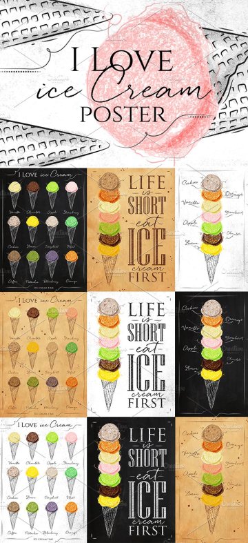 冰淇淋主题手绘插画设计素材 Ice-Cream-Poster
