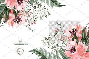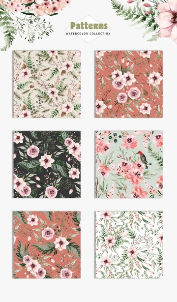 还包含5个透明的PNG无缝图案,叶子,树枝和花朵。