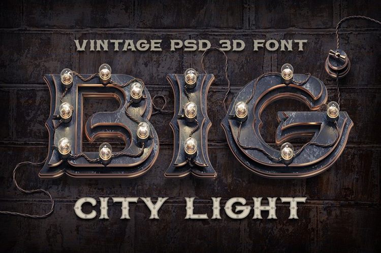 复古蒸汽朋克风格3D三维装饰字母 BIG-City-Ligh