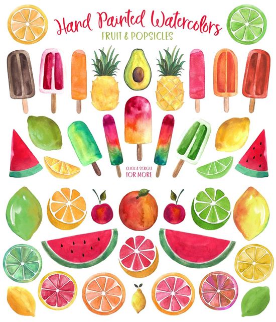 图穷联素材库 » 手绘水彩水果/冷饮/植物插图设计素材 Fresh-Picke