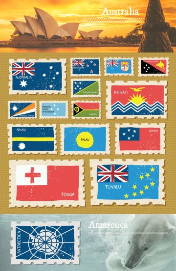 图穷联素材库 » 复古世界国旗邮票设计素材 Flags-of-the-Worl