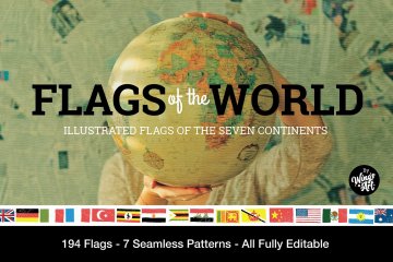 无论您是为旅游网站,期刊,美食博客还是其他具有国际风味的东西写作,这套插图世界的旗帜都将证明是一个完美的资源,您将一次又一次地回归。涵盖了来自非洲,亚洲,南极洲,澳大利亚,欧洲,南美洲和北美洲的所有官方旗帜,您将以风格化的手绘风格找到所需的一切,所有这些都是完全可编辑的,因此您可以将它们变成您自己的。您还可以找到一系列无缝模式,旨在将旗帜作为免费背景或设计元素。