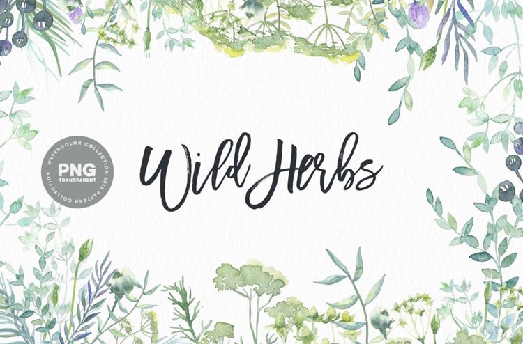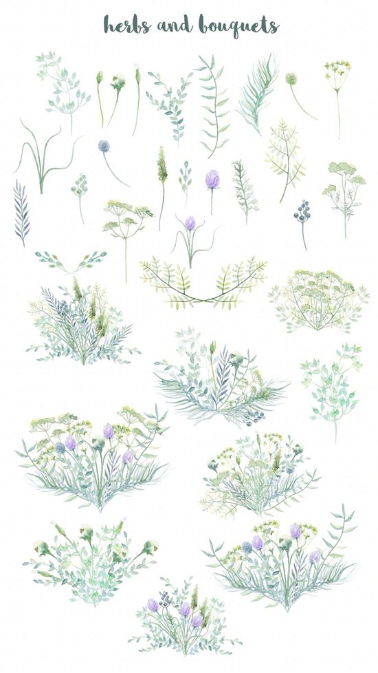 图穷联素材库 » 手绘水彩野生草药花束设计素材 Watercolor-Wild