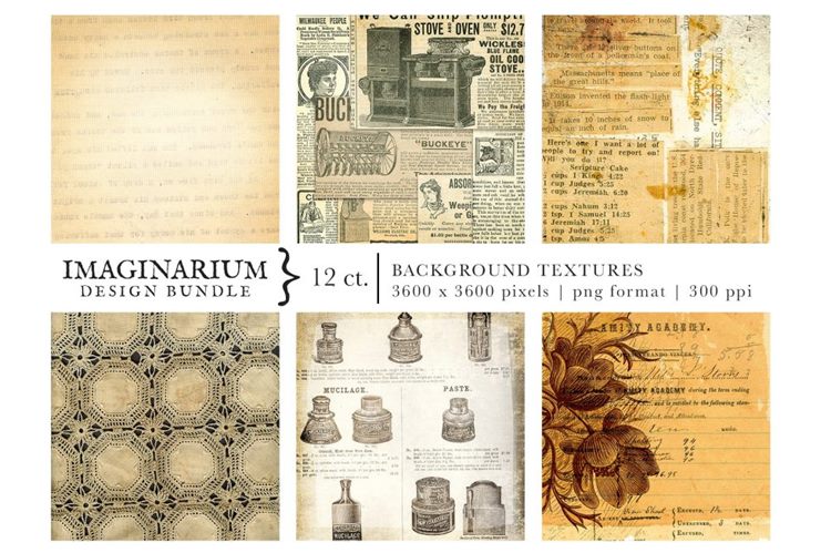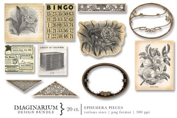 Imaginarium Design Bundle充满了钻头,靴子,纸张和织物,为您的设计增添了一丝复古气息。