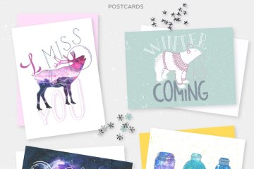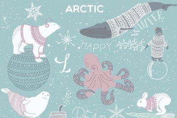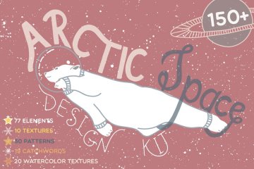 北极元素与太空元素手绘插图素材 Arctic-Space-C