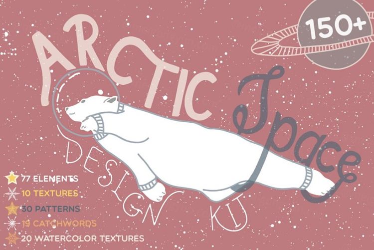 图穷联素材库 » 北极元素与太空元素手绘插图素材 Arctic-Space-C