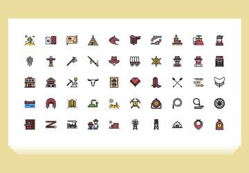 图穷联素材库 » 户外生存露营狂野西部风格矢量图标集Wild West 200
