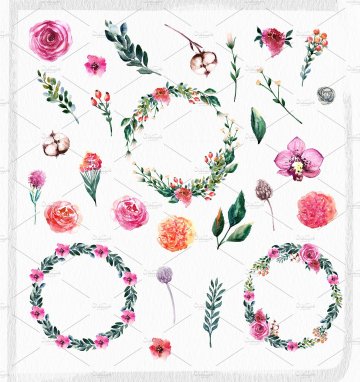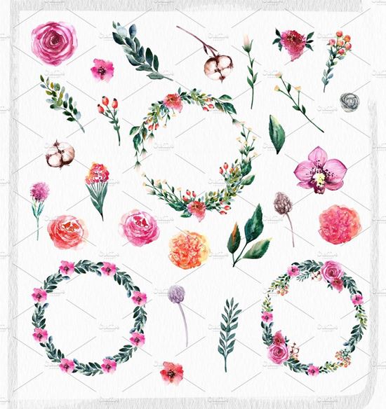 图穷联素材库 » 手绘水彩花卉花束花圈设计素材 Watercolor-Pass