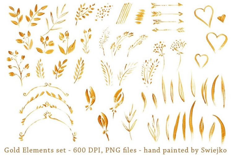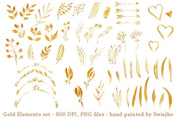 金色的插画很适合做结婚文具等项目。每个图像是一个单独的PNG文件,600dpi,没有背景。