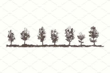 图穷联素材库 » 手绘素描自然景观树木插图素材 Hand-drawn-natu