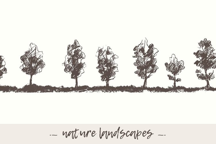 手绘素描自然景观树木插图素材 Hand-drawn-natu