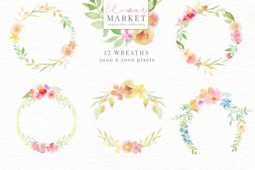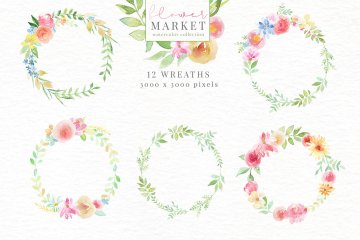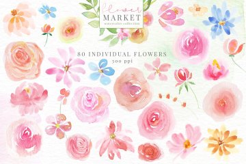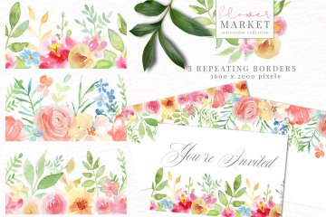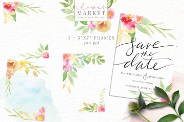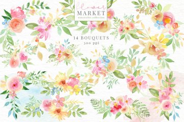 手绘水彩花卉和花卉字母设计素材 Flower-Market-