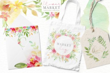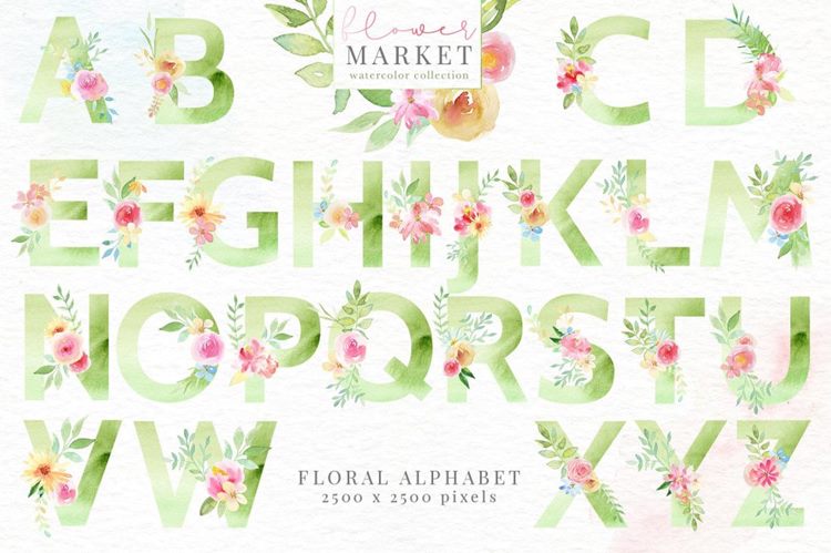 图穷联素材库 » 手绘水彩花卉和花卉字母设计素材 Flower-Market-