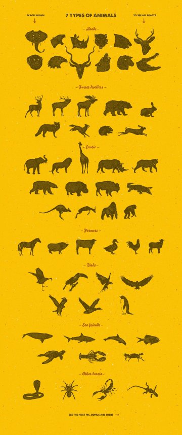 我非常喜欢大自然和动物。这是一个美妙而神奇的地方 - 地球的行星。我可以花几个小时看动物,认为他们现在的想法或感觉。所以我激发了所有这些感受,并创造了这个惊人的矢量包。适合您的徽标或其他内容。如果你喜欢复古风格 - 这个手绘包为您的收藏。