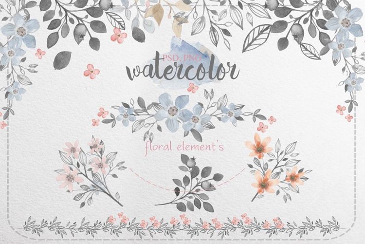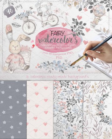 图穷联素材库 » 仙女手绘水彩花卉植物和兔子设计素材 Fairy-waterc