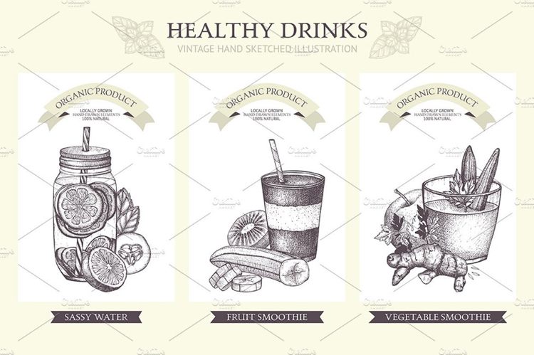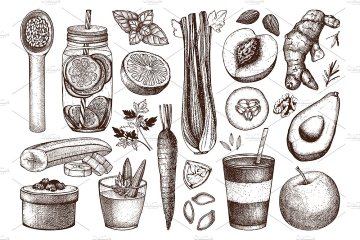 UPDATED + https://creativemarket.com/Yevheniia/1019178-Healthy-Food-Drinks-Sketch
