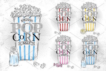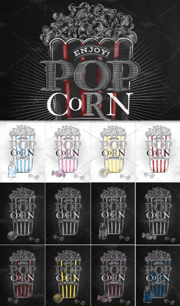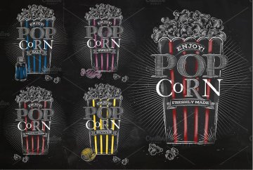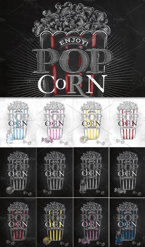 图穷联素材库 » 粉笔画爆米花插图素材 Popcorn-menu