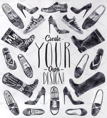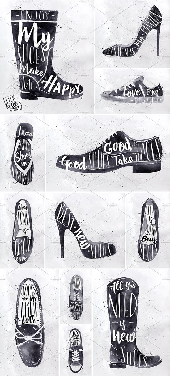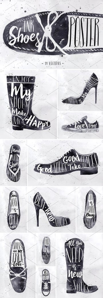 图穷联素材库 » 创意水彩鞋子装饰素材 Ink-Shoes-Poster