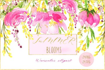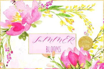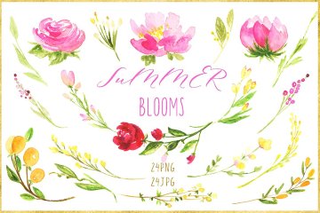 手绘水彩浪漫花卉花束设计素材 Summer-blooms.