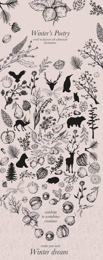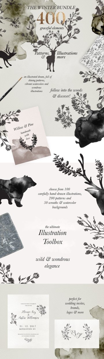 您的所有惊人的圣诞节和冬季设计的一站式商店! 我特别自豪地介绍我迄今为止最大的包,包括你在创建冬季仙境和优雅的圣诞设计时可以要求的一切!:)通过各种插图,花卉图纸和复杂的图案,让您感到舒适并做出精彩的东西。大多数这些项目的创建时间都超过了本季,所以如果您正在寻找图形来完成您的优雅品牌或想要为客户或您的商店创建徽标,那么您就已经拥有了这一大包!