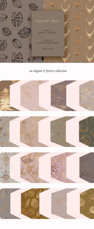 图穷联素材库 » 冬季圣诞主题装饰插图元素Golden-Winter-Patt