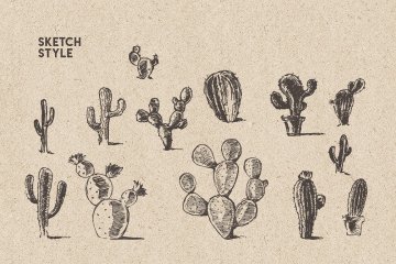 图穷联素材库 » 素描仙人掌元素装饰素材 Big-cacti-bundle-s
