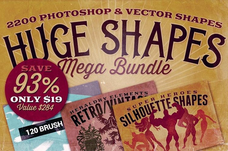 200个Photoshop和矢量形状在1巨大的超级捆绑!93%OFF(原价$ 284)