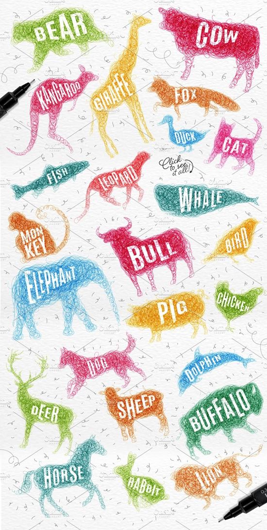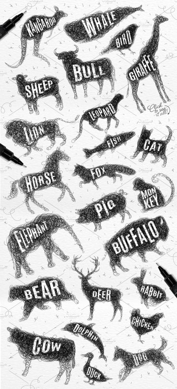 图穷联素材库 » 矢量手绘线条缠绕动物矢量插图 Animals-tangled
