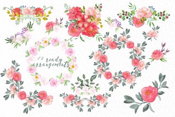 这组牡丹水彩花卉剪贴画合集是用于设计婚礼请柬、标志、t恤等项目的理想元素。您将收到1个ZIP文件夹, 包括了48个PNG文件和48个JPG文件。