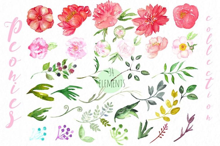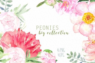 图穷联素材库 » 手绘水彩牡丹玫瑰花卉花束设计素材 Peonies-big-c
