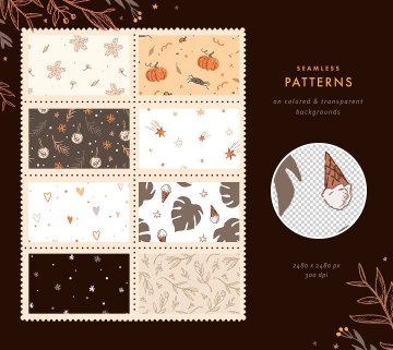 无缝模式文件夹 - 彩色和透明背景上的13种图案(2480 x 2480像素,PNG)